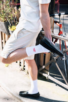 Our snug and soft More Amour tennis socks remind you with every step to treat yourself and others with love.